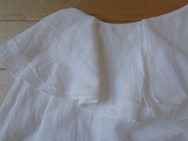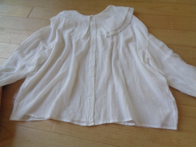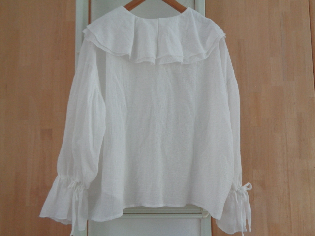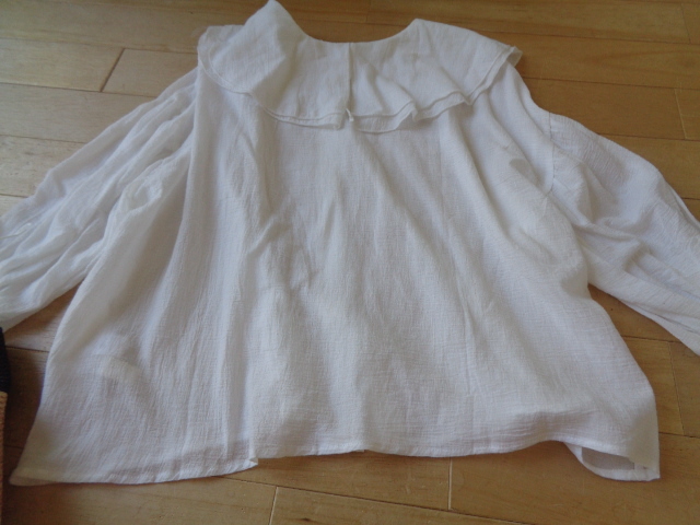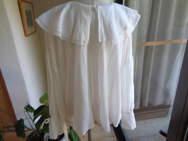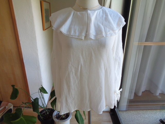> JUNOAH コットン100% 長袖 ゆったりデザインブラウス 白 楊柳生地♪ ドロップショルダー☆ L 小顔見え 美品(^^♪