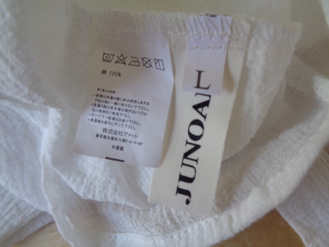 - JUNOAH コットン100% 長袖 ゆったりデザインブラウス 白 楊柳生地♪ ドロップショルダー☆ L 小顔見え 美品(^^♪