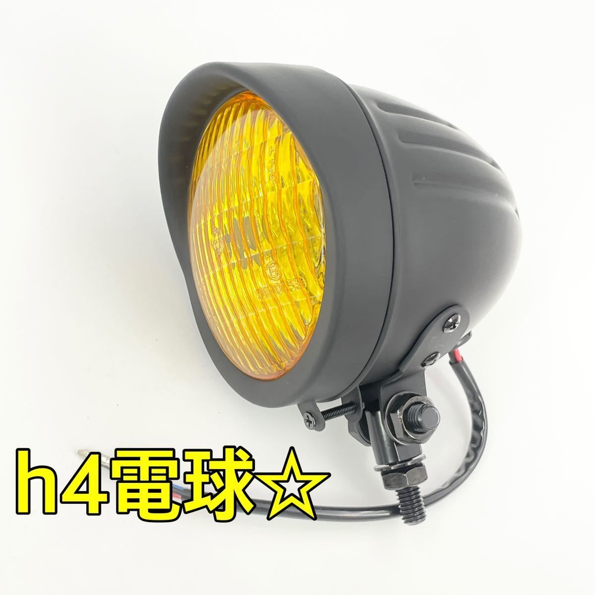 > ブラック×イエローレンズ☆4.5インチ ベーツライト H4 ヘッドライト チョッパー ボバー バイク ykshopb