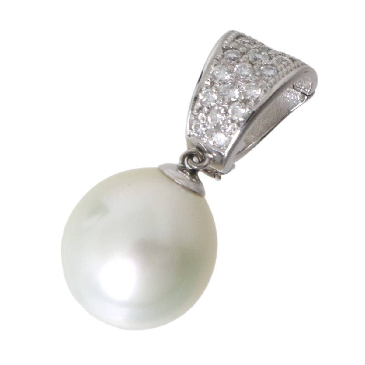 - K18WG ホワイトゴールド ダイヤ 南洋真珠 パール ペンダント トップ 鑑別書付き 0.29ct 8.0g KA Bランク