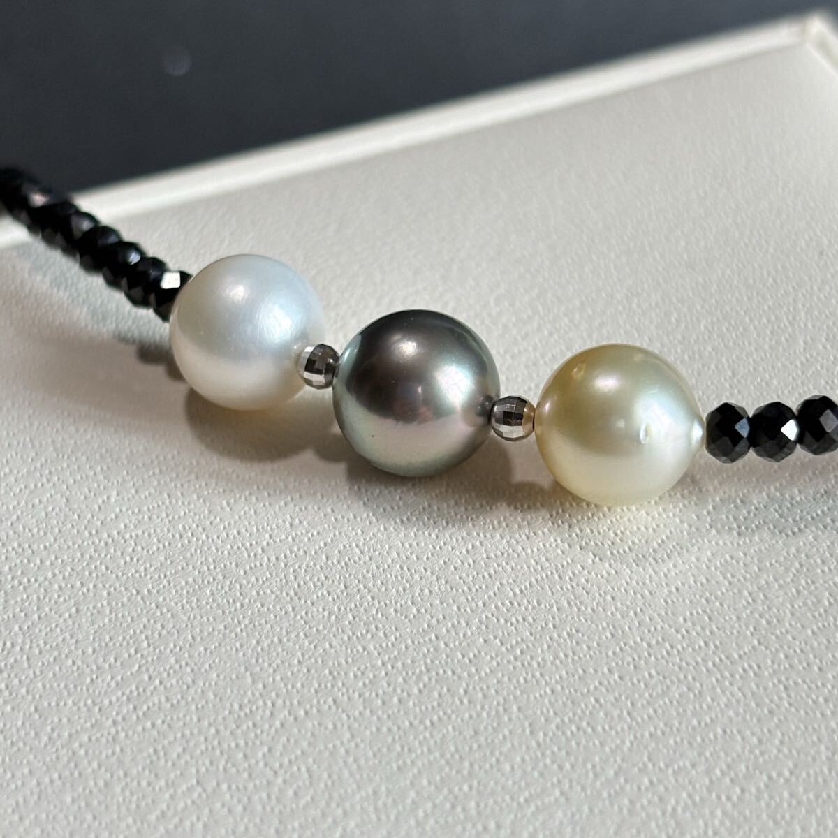 - N74 天然 黒蝶 南洋白蝶真珠 ブラックスピネル ネックレス