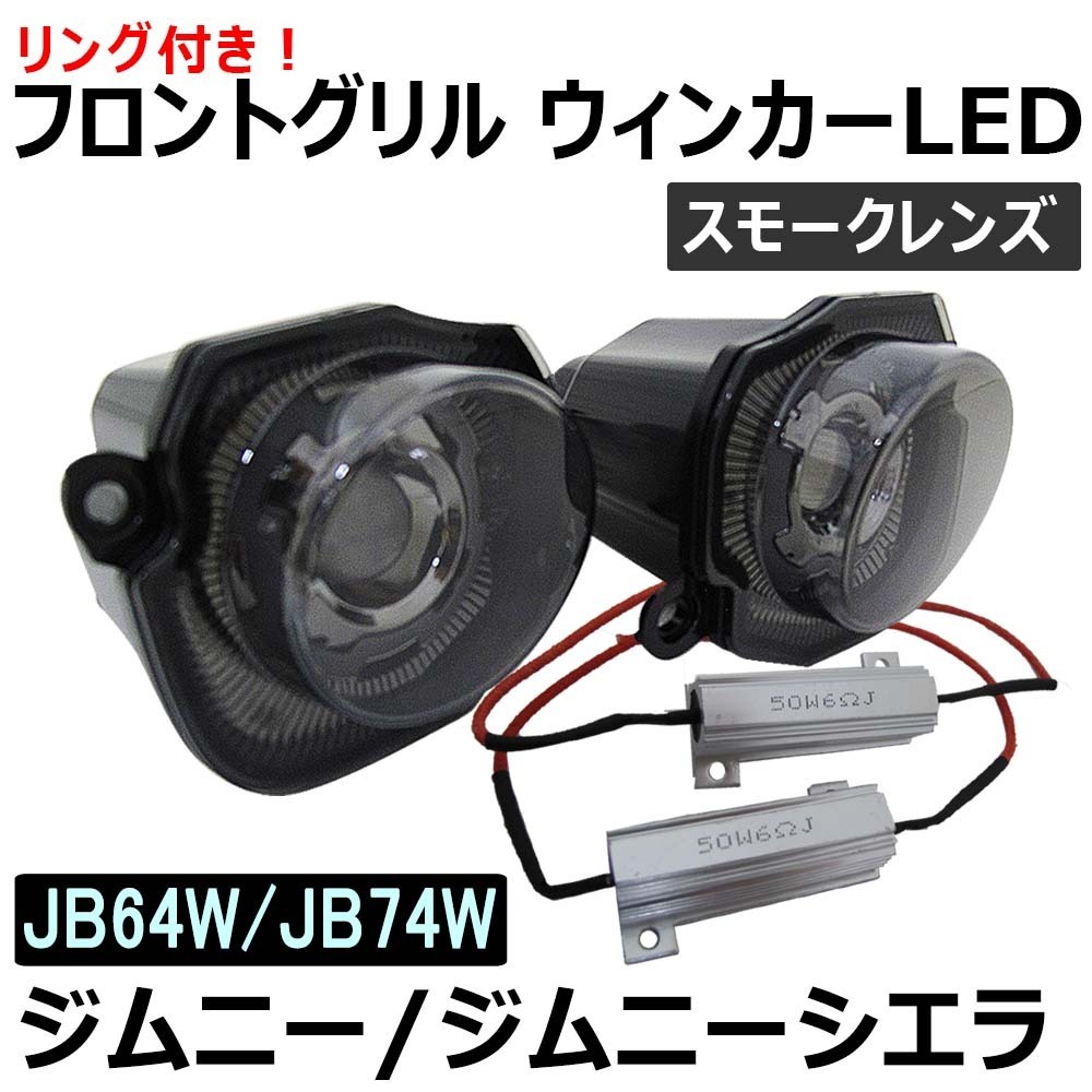 > 【互換品】ジムニー・ジムニーシエラ (JB64W JB74W) / フロントグリルウィンカーLED / スモークレンズ/リング付き