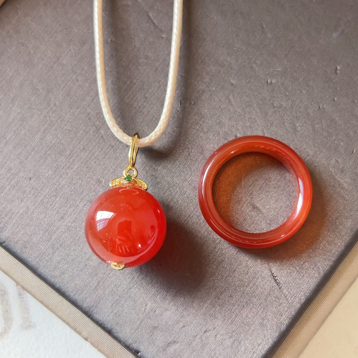 - ◇赤瑪瑙◇レッドメノウ◇アゲート◇ネックレス+リング(12号) 計2点セット◇パワーストーン◇天然石◇巾着袋付◇プレゼントに030S839