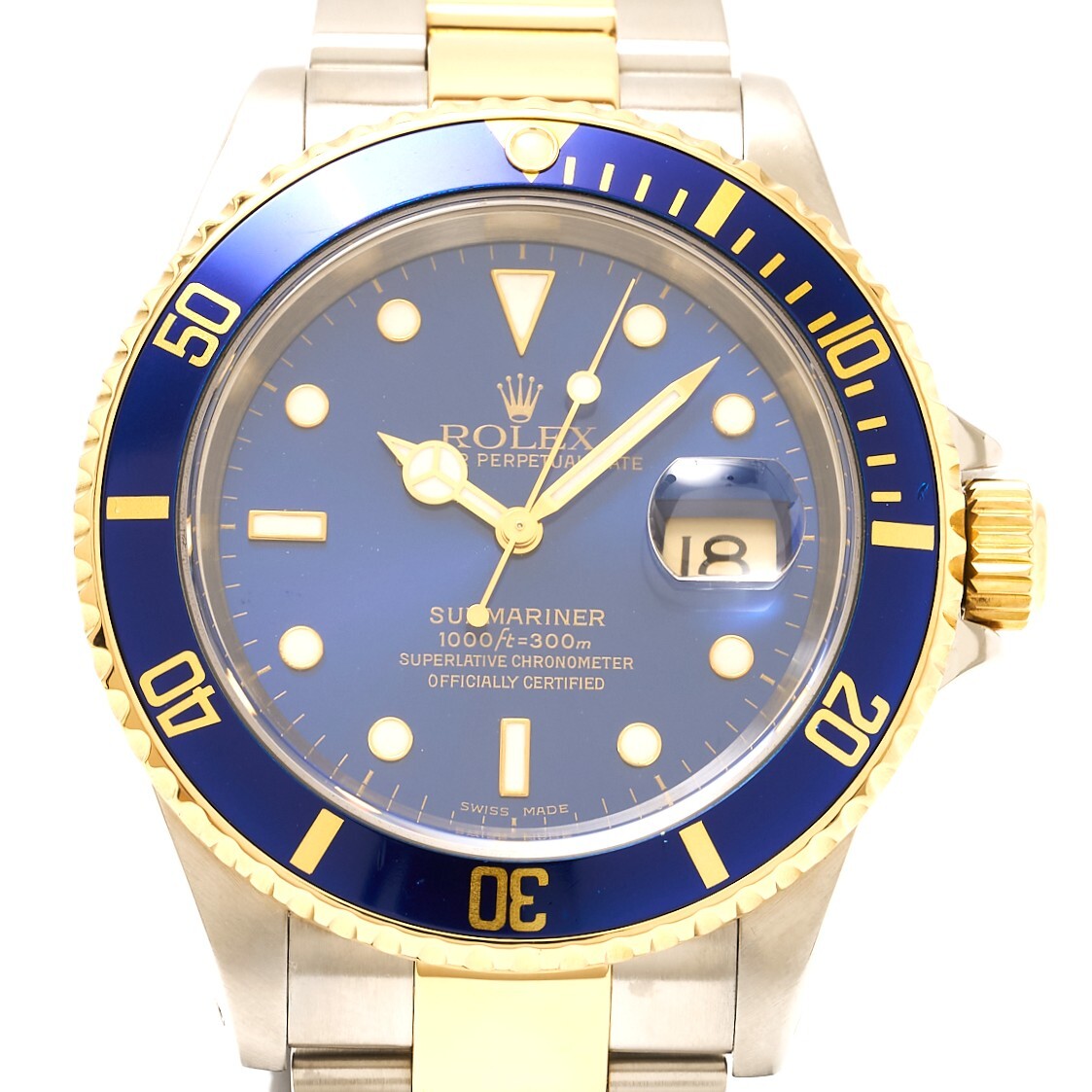 > 【1年間保証・仕上げ済】ROLEX ロレックス サブマリーナ デイト 16613 K番 SS×YG ブルー文字盤×ゴールド×シルバー 自動巻き 腕時計