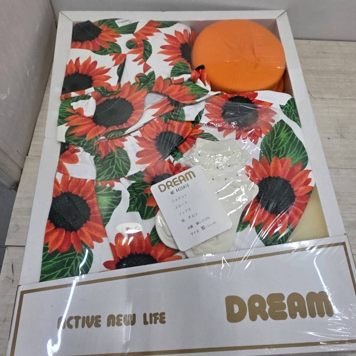 > 送料無料S96738 ひまわり柄 90cm 帽子 ジャケット スカートソックスセット ベビー用品 未使用