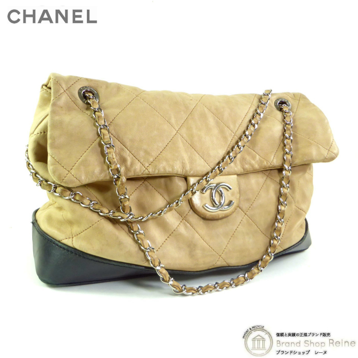 - シャネル (CHANEL) バイカラー ダブルチェーン ショルダーバッグ ベージュ×ブラック(中古)