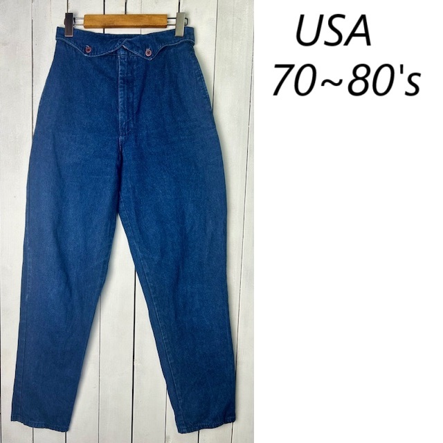 > USA古着 70~80s ロールウエスト ライトオンスデニムパンツ 9 S~M 42TALON オールド ヴィンテージ トラウザーズ やや薄手 ●285