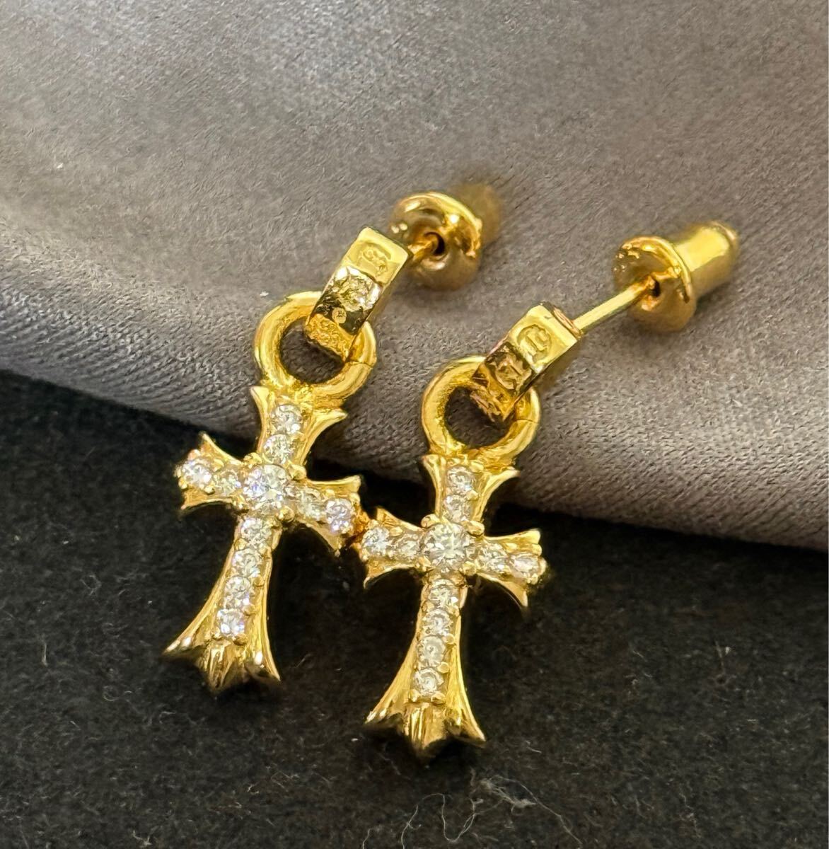 - 両耳シルバー925x22k ゴールドクロスピアス ベビーファットクロスピアス 人気クロスピアス