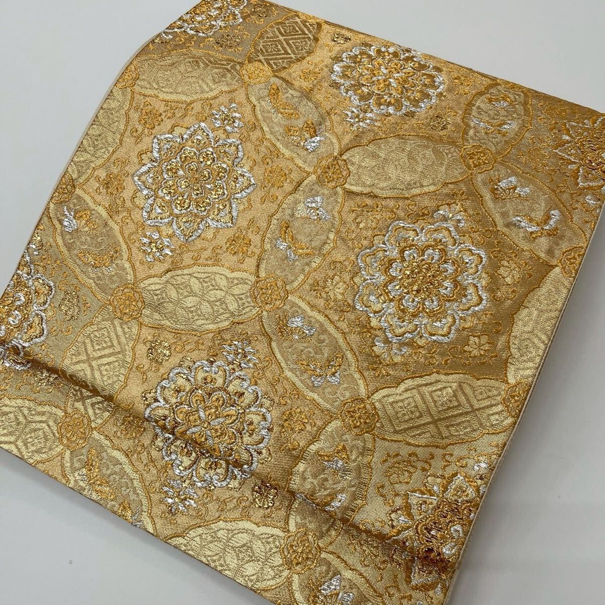 > 袋帯 正絹 七宝 華文 金糸銀糸 六通 W-3456