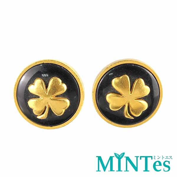 - Chanel シャネル クローバー イヤリング ブラック×ゴールド メタル アクセサリー ワンポイント お出かけ デイリー 四つ葉のクローバー