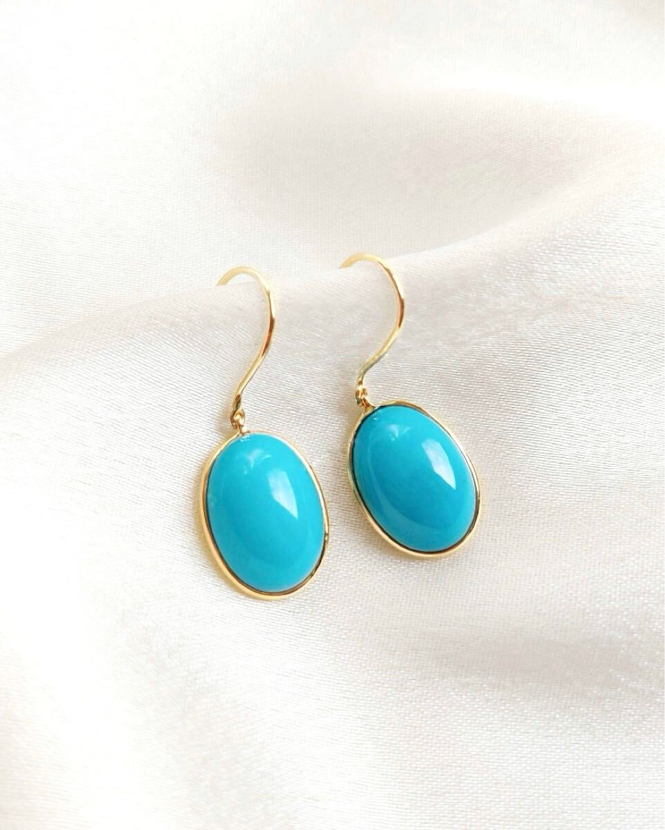 - 天然石 14K スリーピングビューティーターコイズ トルコ石 ピアス