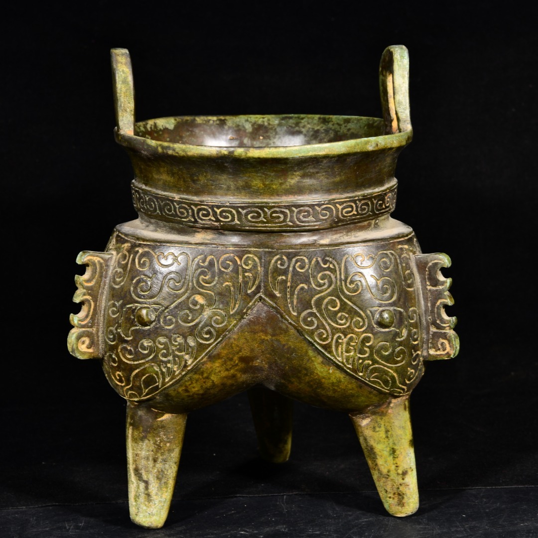 - ■TX125■商周時代 青銅器 獣紋饕餮文 銘文入れ 鬲鼎 ・絶品 時代物 古玩 唐物 古陶磁器■
