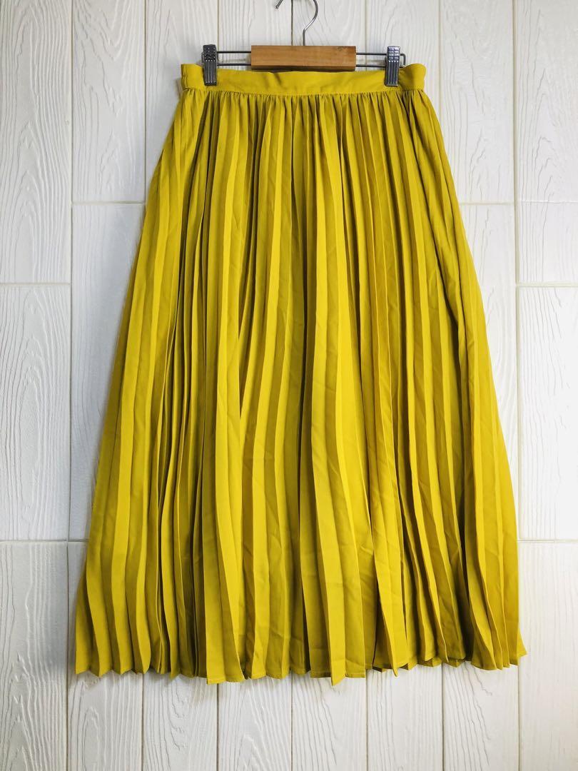 - GU イエロー プリーツスカート ウエストゴム66cm丈78cm Mサイズ