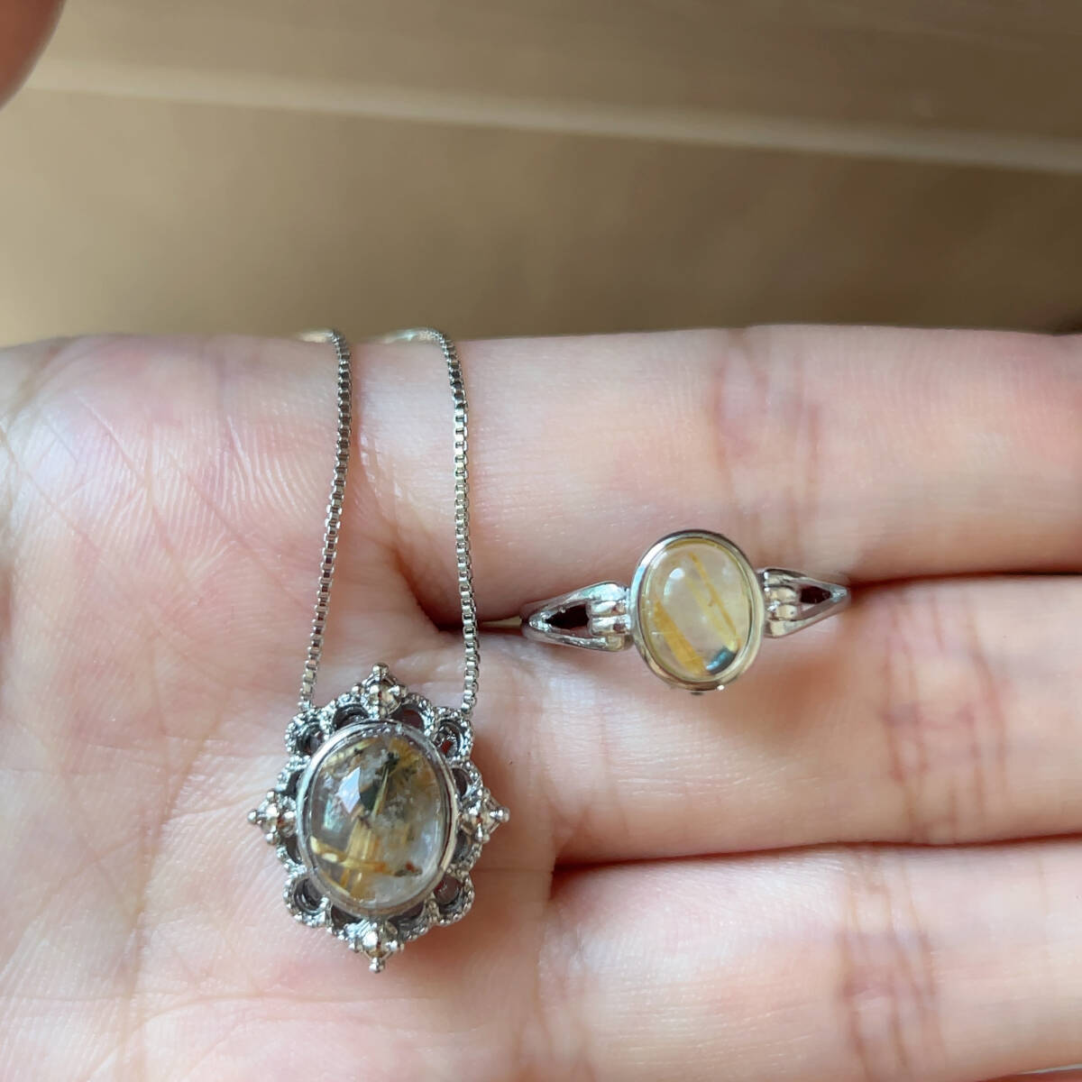 > ◇チタンルチルクォーツ(針水晶)◇ネックレスペンダント+リング計2点セット◇パワーストーン◇天然石◇巾着袋付◇プレゼントに039S865