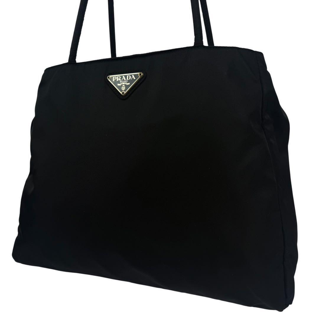 - 【美品】PRADA プラダ トートバッグ ハンドバッグ 肩掛け可能 手提げカバン 三層式 ナイロン ポコノ 黒 ブラック 白タグ LAMPOジップ