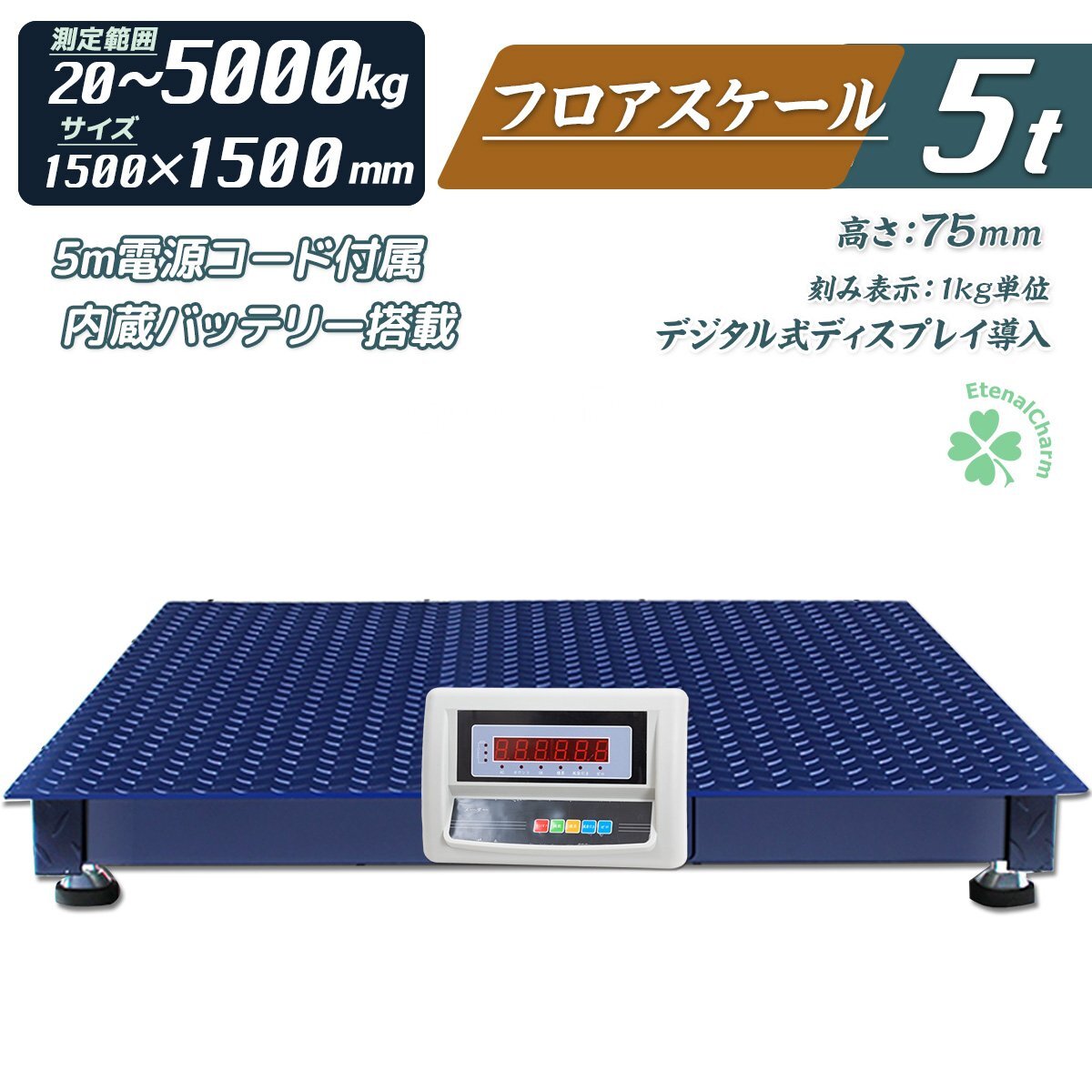 - 【営業所止め】◆送料無料◆5t(5000kg)デジタル式フロアスケール 内蔵バッテリー LED照明 5トン 1500MM 風袋引き 台秤 計量器 スケール