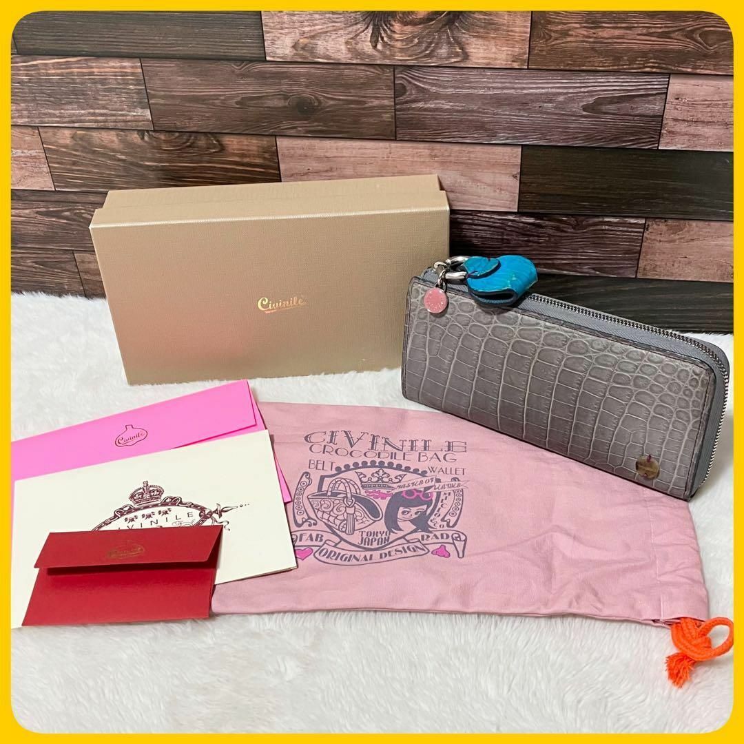 - 極美品 箱付 CIVINILE チビナイル 長財布 ラウンド ファスナー クロコ