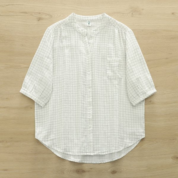 - c 2508 ダブルガーゼ フリーサイズ チュニック トップス ナチュラル 綿100% 通気性肌触り抜群 サラサラ ゆったり Vネック チェック柄
