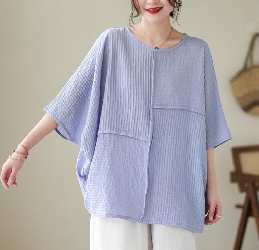 - 人気推薦/ドルマン ブラウス チュニック レディース 七分袖 カットソー Tシャツ クルーネック トップス 薄手 透け感 シャツ 着痩せ/紫