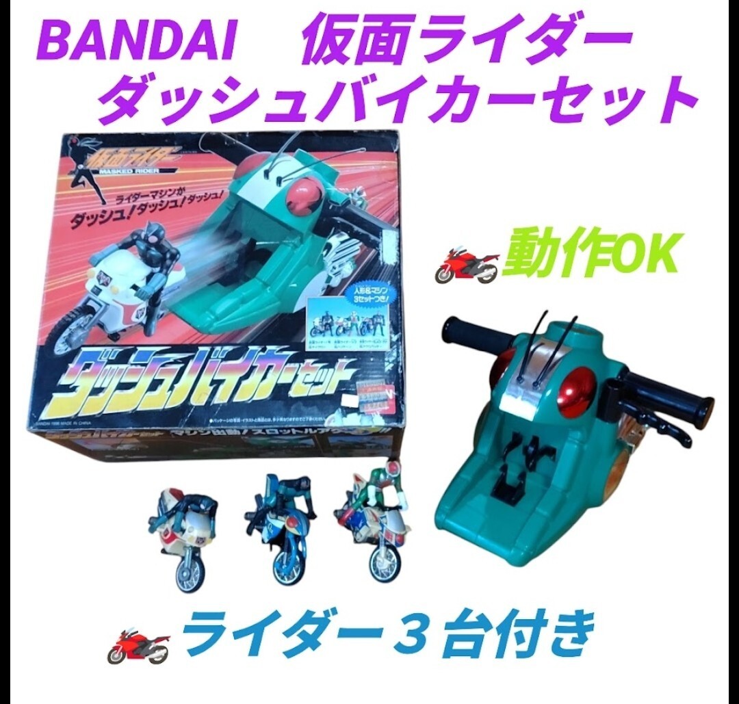 - 【動作OK/ライダー3台付き】バンダイ/BANDAI 仮面ライダー ダッシュバイカーセット 仮面ライダー1号 V3 BLACK RX レトロ 希少品