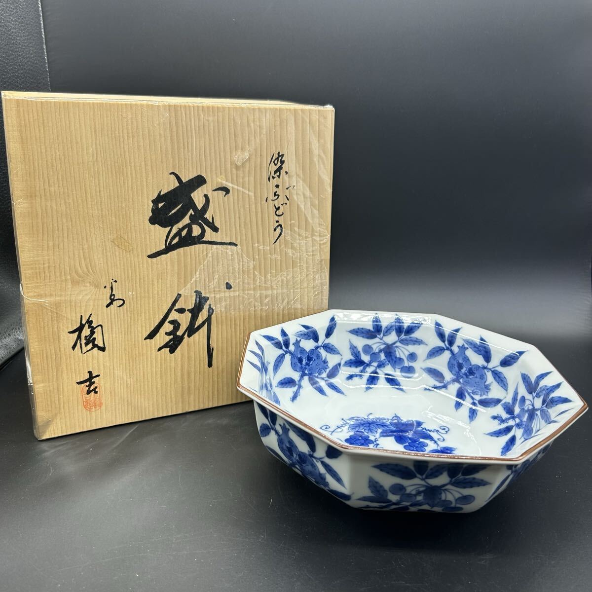- 橘吉 たち吉 八角 盛鉢 煮物鉢 大鉢 ボウル 深鉢 ぶどう絵 染ぶどう 葡萄柄 食器 エ16