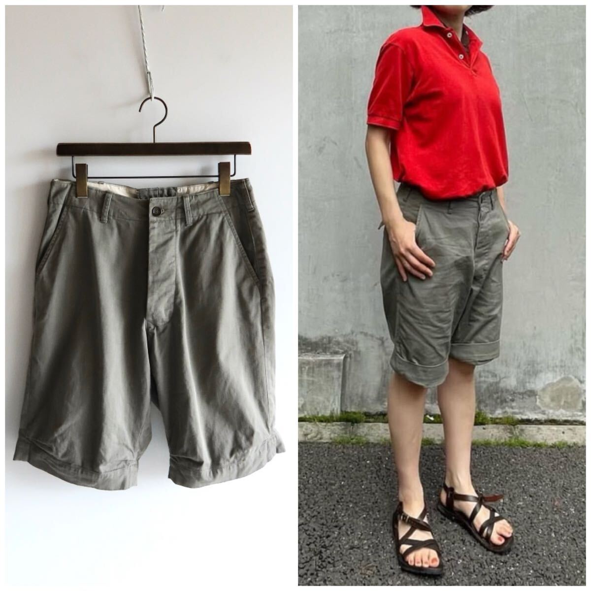 > 45R おこめチノの908チーゴショートパンツ 2 カーキグレー系 ボタンフライ コットン ショーツ ユニセックス 45rpm umii908 Badou-R