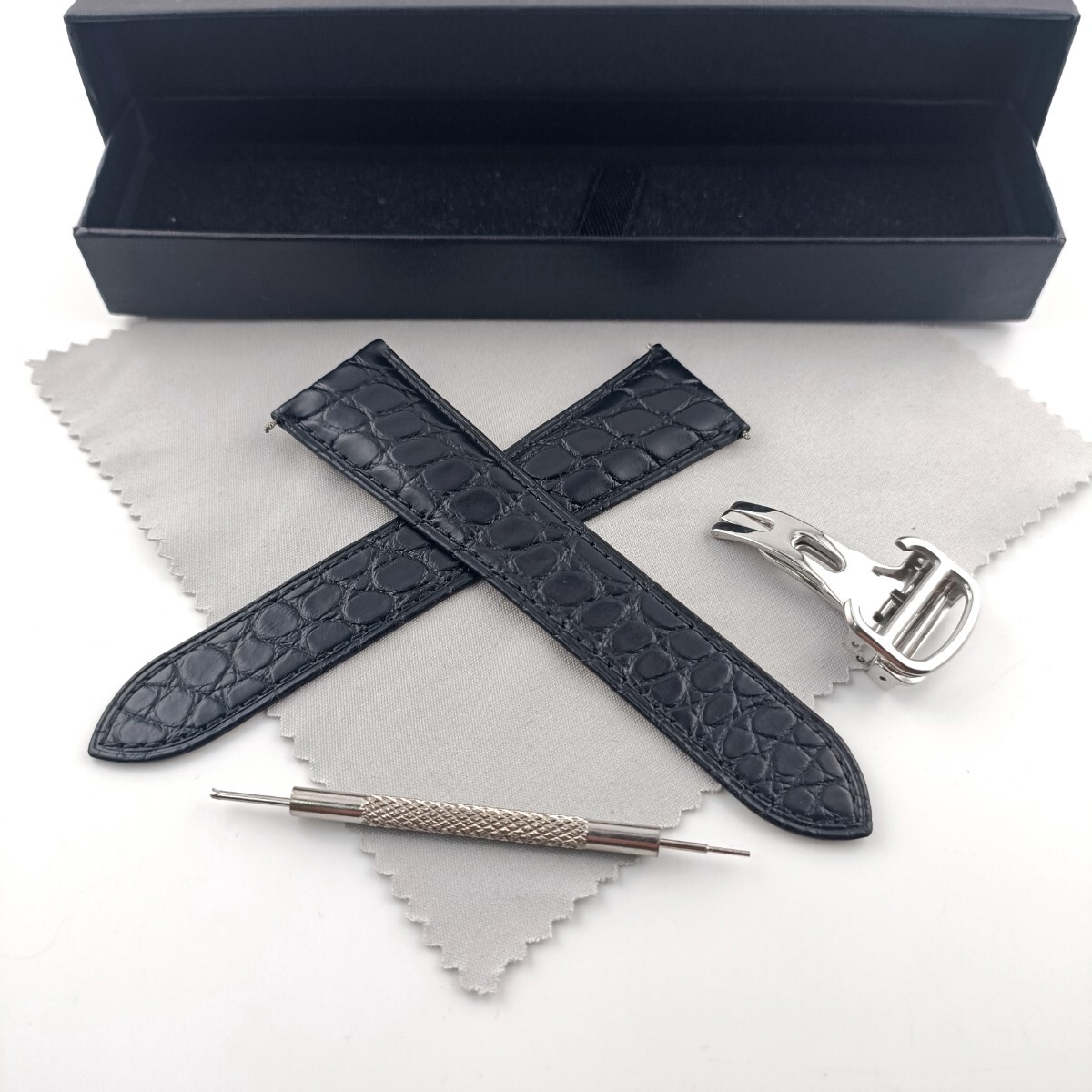 - 24mm 腕時計 アリゲーター レザー ベルト ブルー ブラック 黒 防水仕様 バックル付 【対応】カルティエ タンク等 Cartier