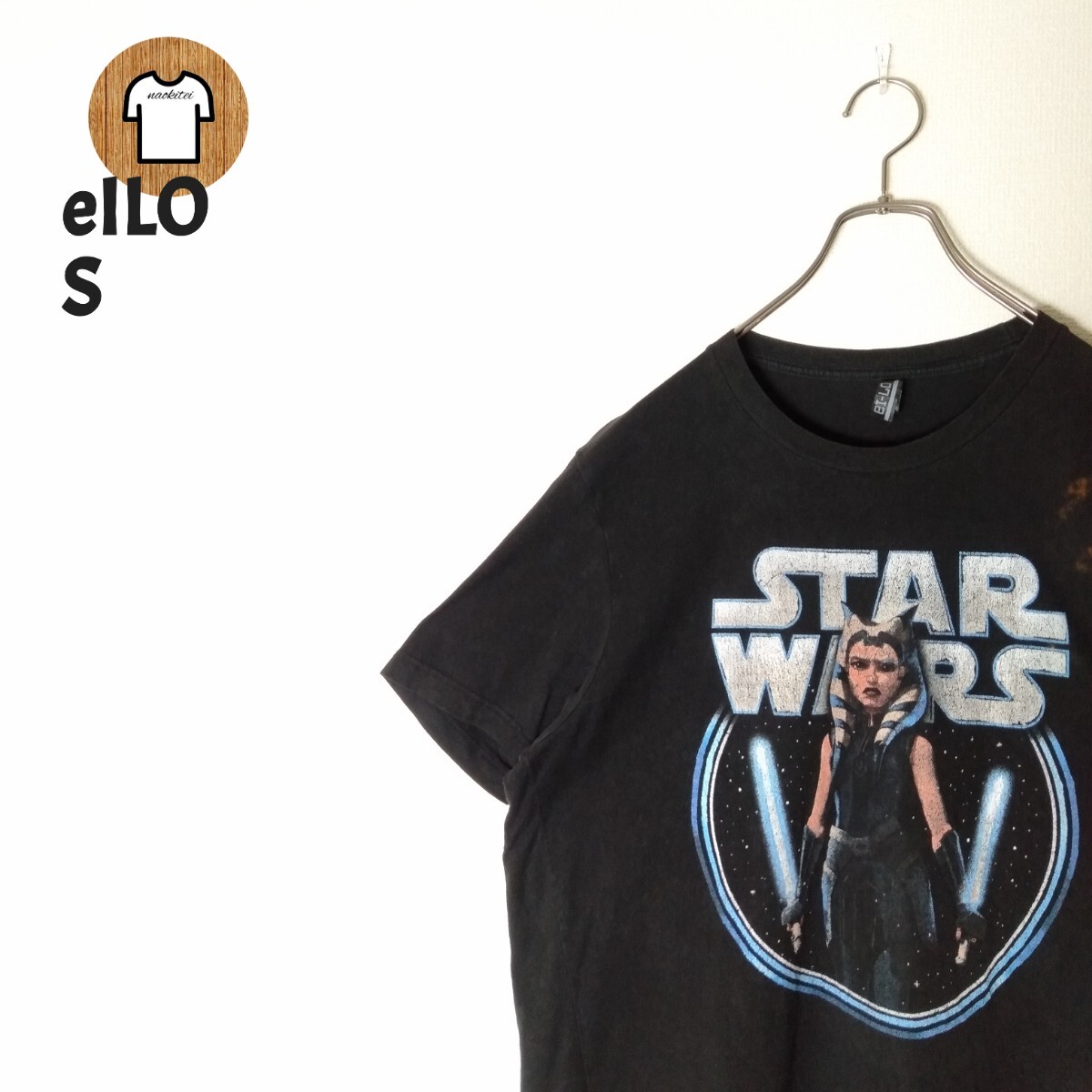 > eILO 半袖 Tシャツ tシャツ S ブラック 黒 ダークカラー B112 スターウォーズ ビッグプリント バイアスカット コットン 綿