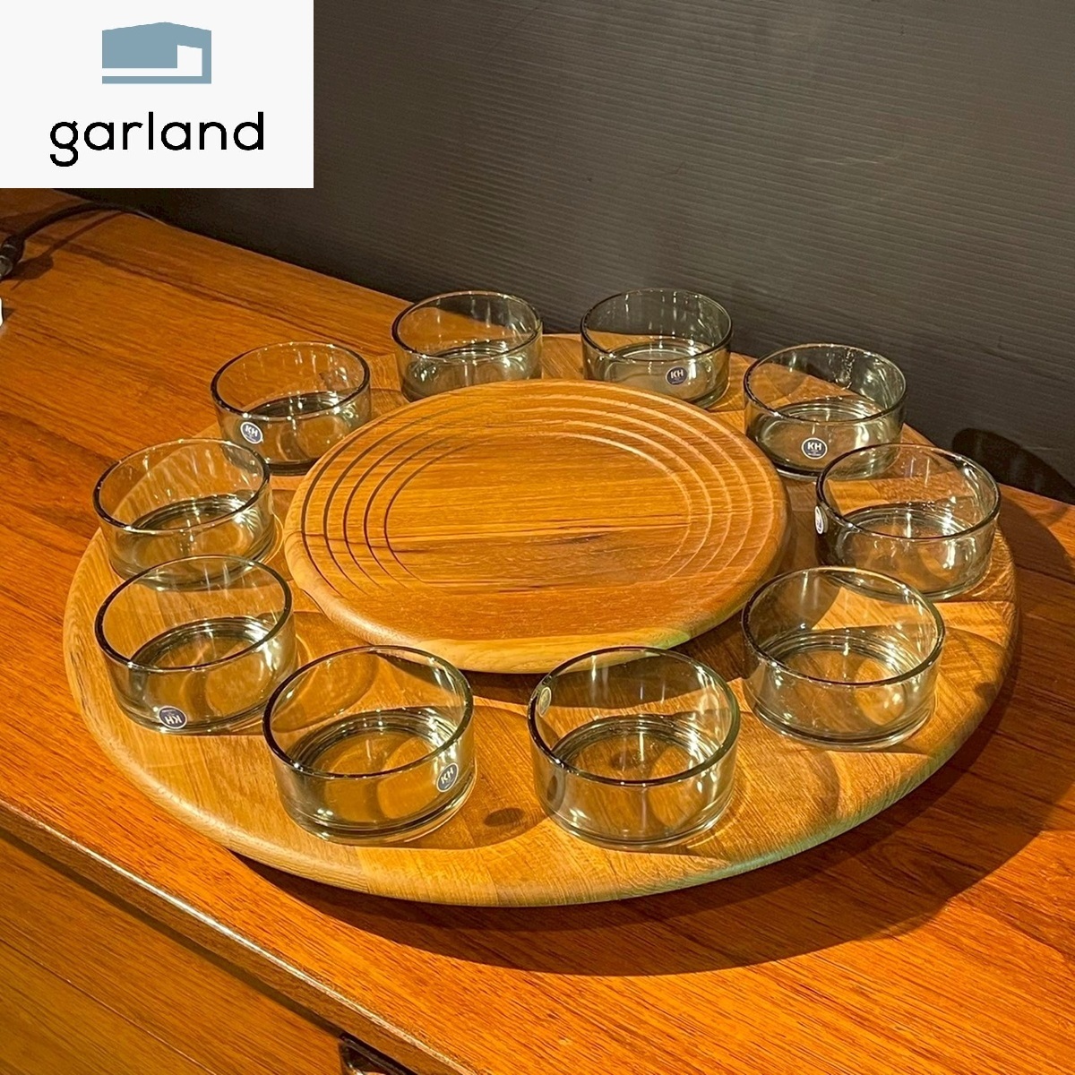 > 70s デンマーク製 DIGSMED社 ディグスメッド 回転サービングトレイ チーク材 ガラス小皿10枚 ヴィンテージ ミッドセンチュリー 北欧 希少