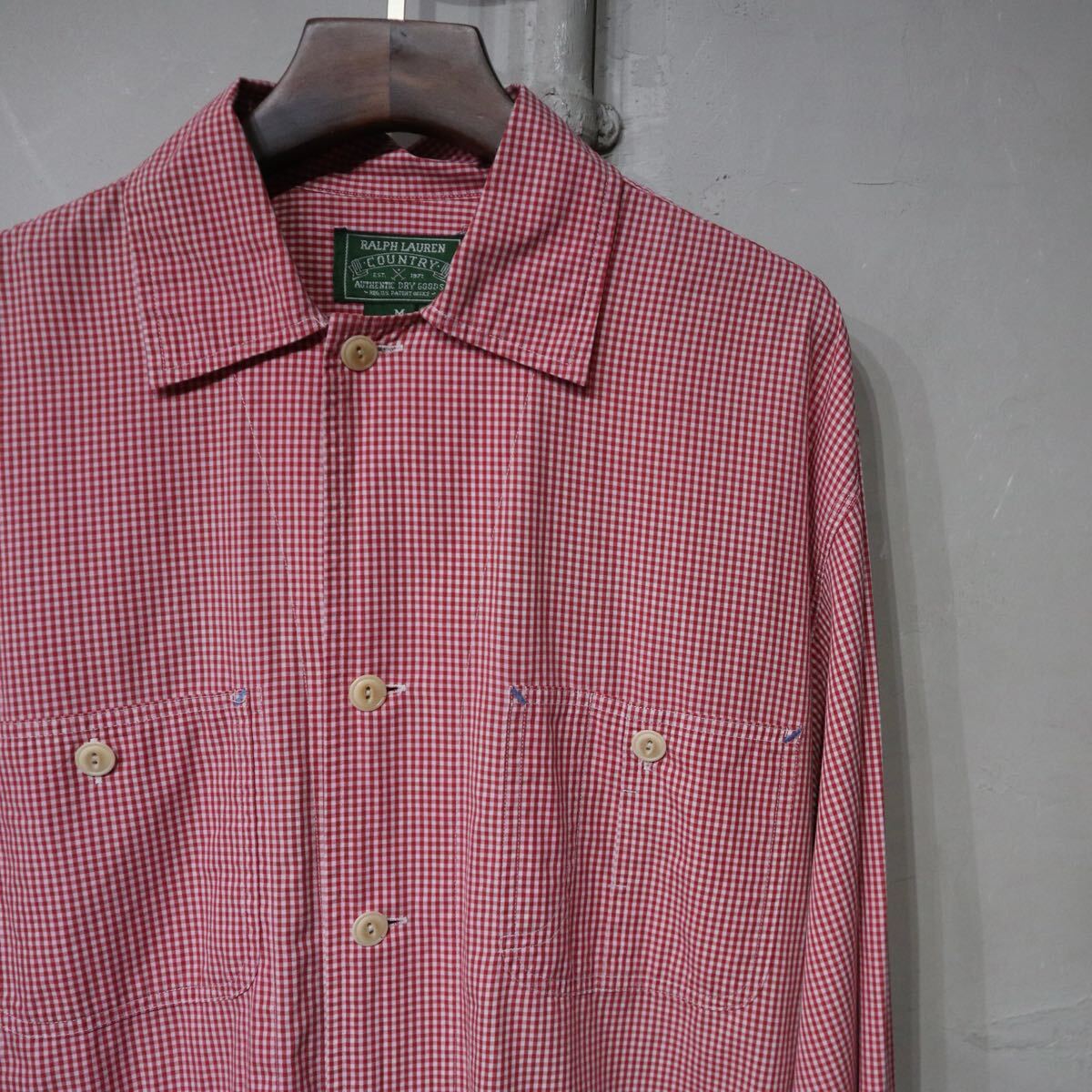 > 【即決】POLO COUNTRY RALPH LAUREN ポロカントリー ラルフローレン ギンガムチェック ワークシャツ レッド 赤 古着 M
