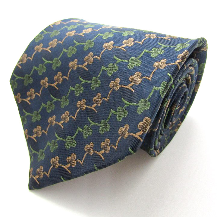 - イヴ・サンローラン ブランド ネクタイ YSL ストライプ柄 クローバー シルク PO メンズ ネイビー YVES SAINT LAURENT
