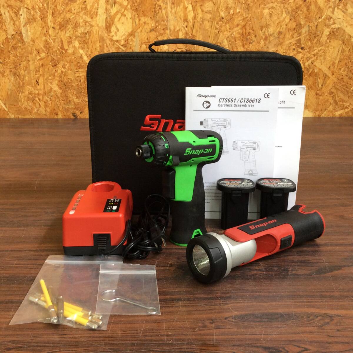 > 【WH-7459】中古品 Snap-on スナップオン コードレスドライバ CTS661+コードレスワークライト CTL761 充電器+バッテリ2個