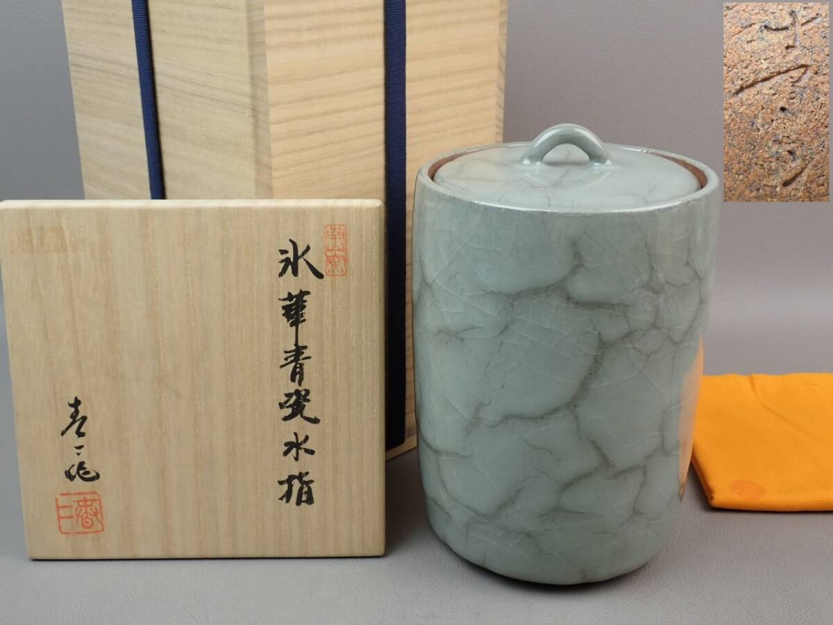 > 【骨董・茶道具】★田沼春二★★氷華青瓷水指 gn063ub 花道 華道