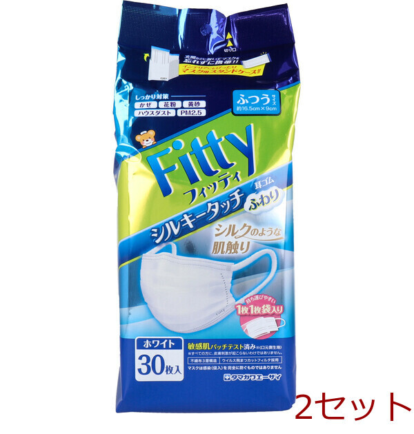 - フィッティ シルキータッチ 耳ゴムふわり ホワイト ふつうサイズ 個別包装 ケース付 30枚入 2セット