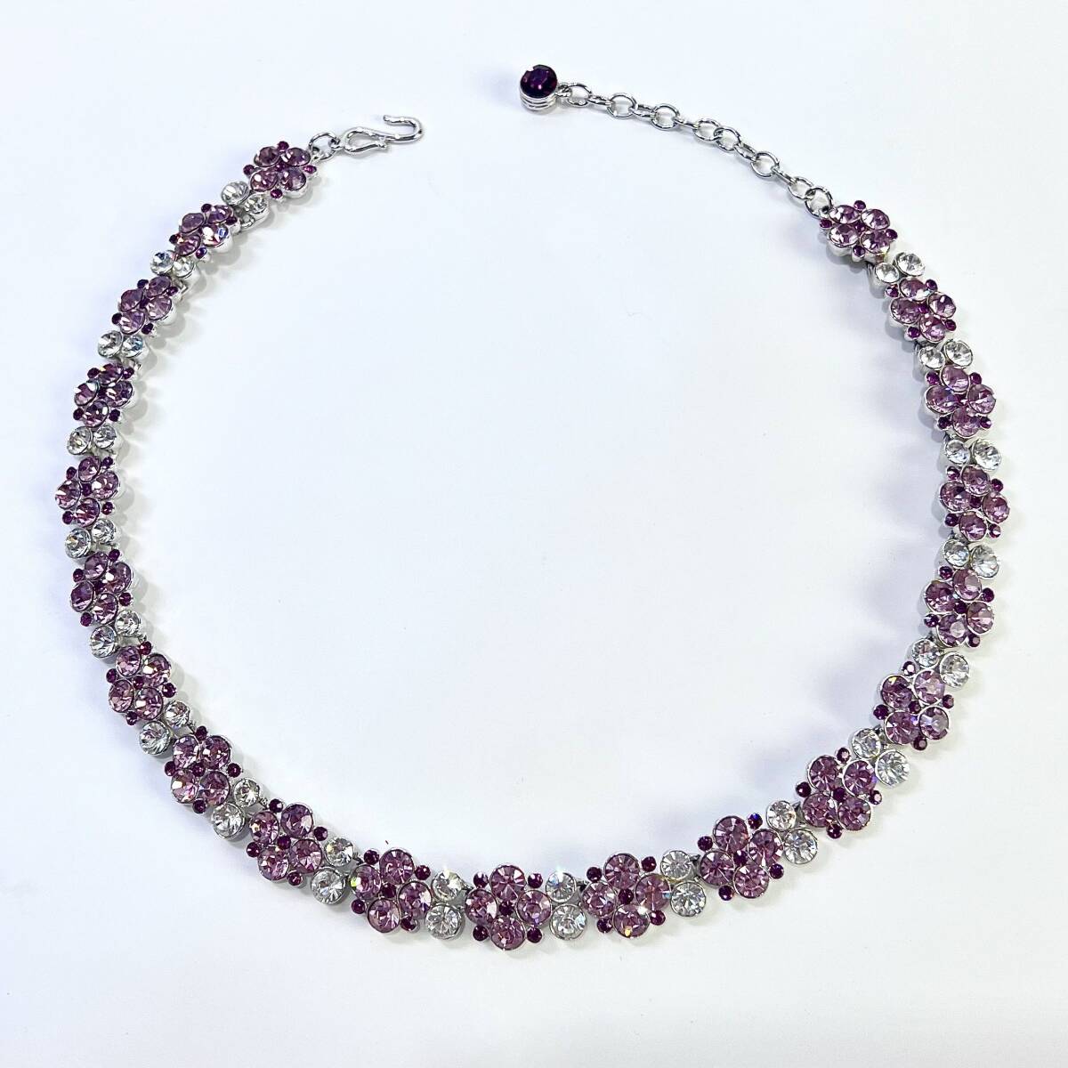 > GIVENCHY ジバンシイ ジバンシー フラワー 花 ラインストーン ネックレス レア パープル 48cm 箱 レディース アクセサリー 希少