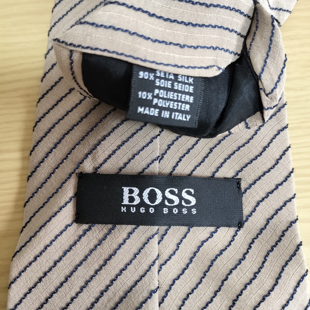 - HUGO BOSS (ヒューゴボス)ベージュ線ストライプ模様ネクタイ