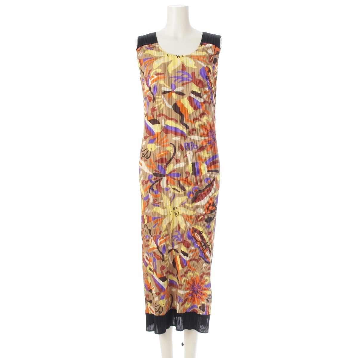 > イッセイミヤケ 16年 太陽 孔雀 総柄 プリント ノースリーブ ワンピース PP63-JH585 マルチカラー 4【中古】