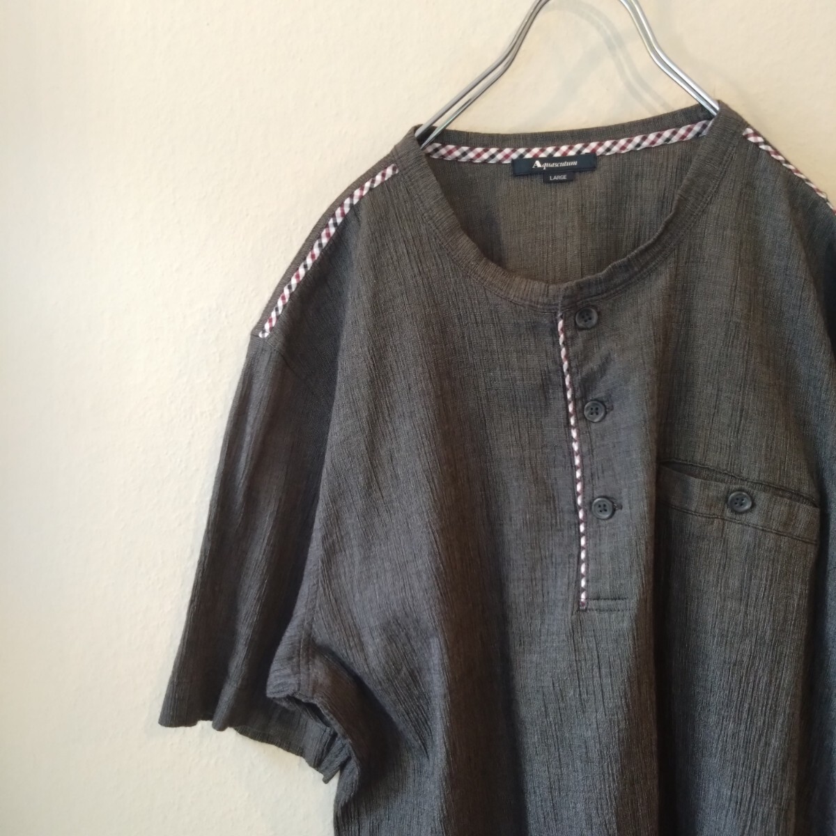 - アクアスキュータム Aquascutum ヘンリーネック カットソー Tシャツ グレー /Y4000
