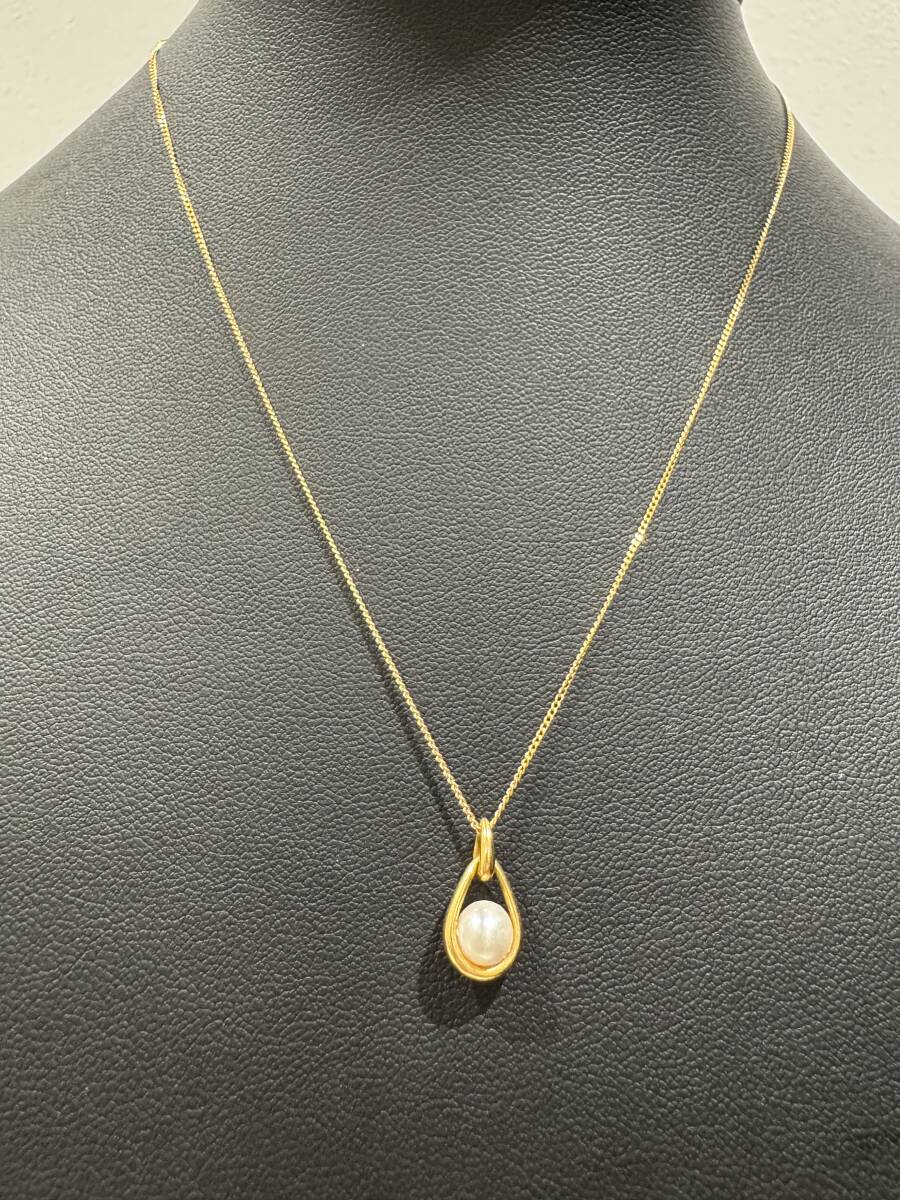 - 【4℃】ヨンドシー K18 1粒パール ドロップ ネックレス 総重量2.0g 約39㎝