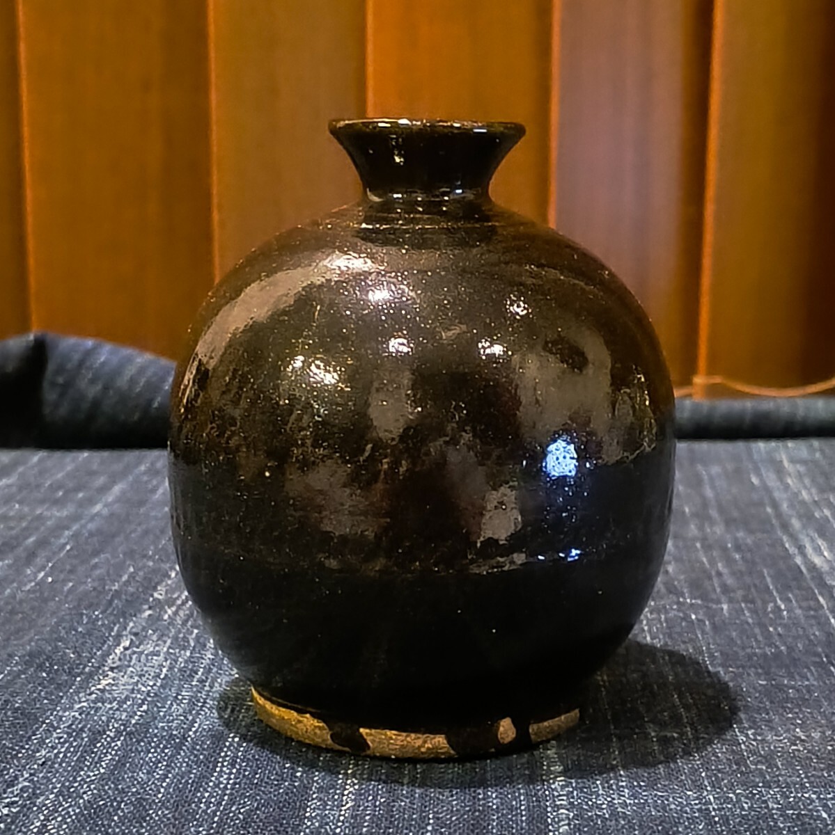 - 黒釉 飛び鉋 丸花瓶 検) 民芸 古道具 骨董 古民芸 古瀬戸 やちむん 壺屋焼 花瓶 花器