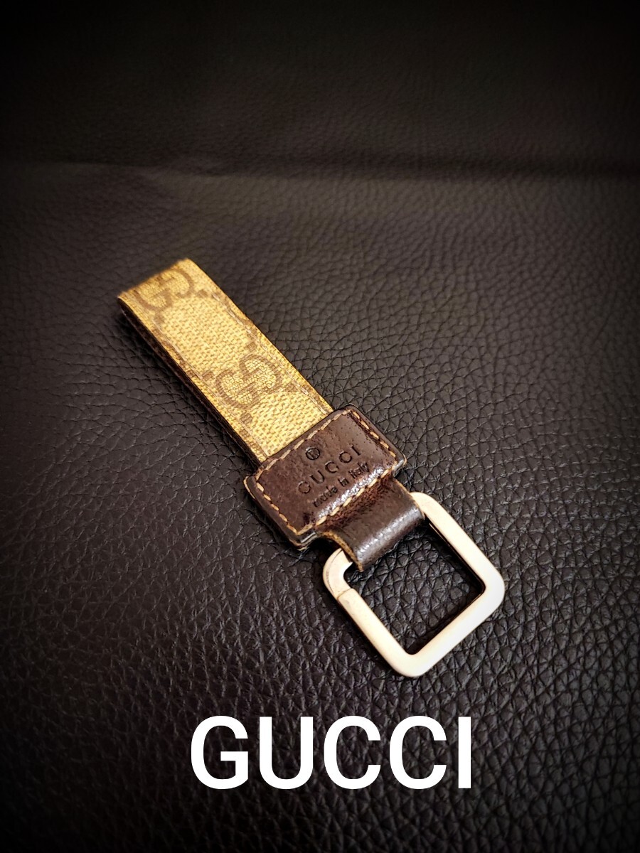 > 良品 GUCCI グッチ キーホルダー レザー キーリング キーケース スマートキー カラビナ ベルトループ バッグチャーム モノグラム
