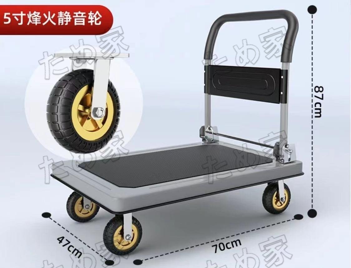 - キャリーカート 台車 折りたたみ 軽量 運搬台車 70×47cm 大天板 荷台車 大型 荷物台車 耐荷重 400kg 手押し車 グレー