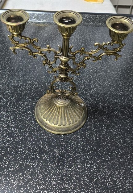 - キャンドルスタンド アンティーク 燭台ブラス製 3灯キャンドルホルダー アンティーク調