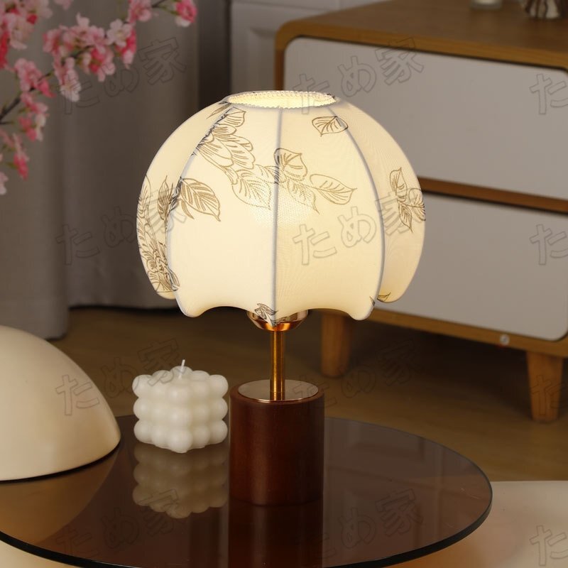 > 01 テーブル照明 ウッドベース照明 テーブルランプ テーブルスタンドライト 照明器具 レトロ 高級感 布製ランプシェード