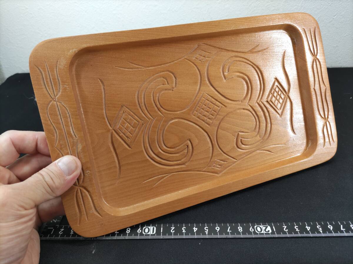 - ■送料無料!■アイヌ文様・トレー・H1.8×W30×D17cm■木製■アイヌ模様・紋様・木彫り工芸品■郷土民芸品!