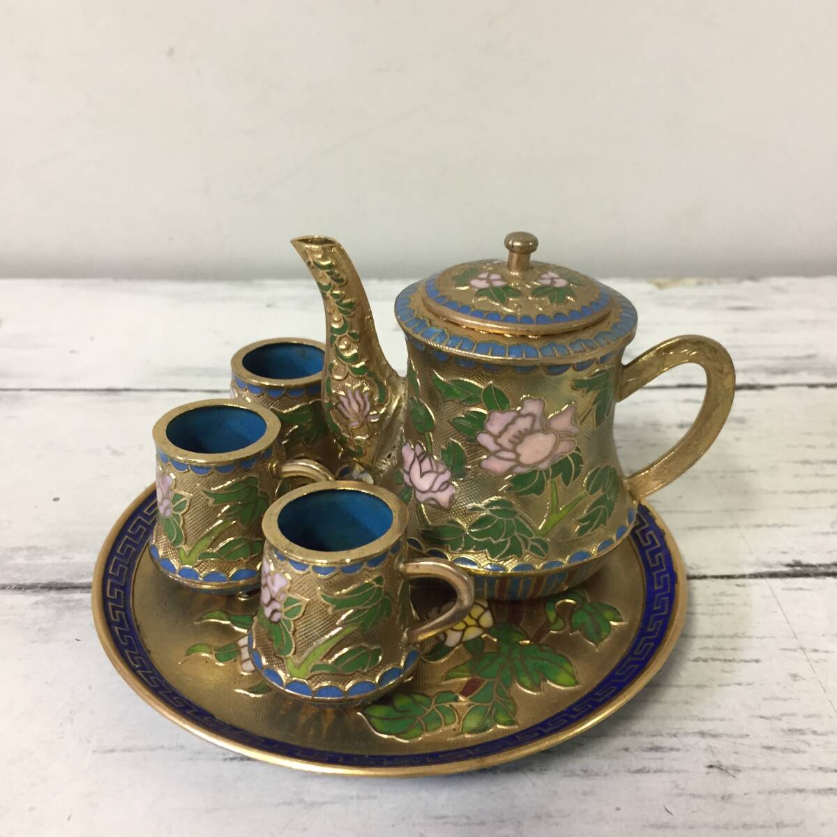 - 中国 七宝焼 ミニチュア茶器セット 工芸 インテリア Z50811