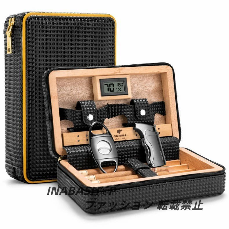 - 葉巻ケース シガーケース 保湿 携帯 喫煙器具 シリコーンゴム 松木 4本用 本革製品 ポータブル 父の日 贈り物 プレゼント 松木