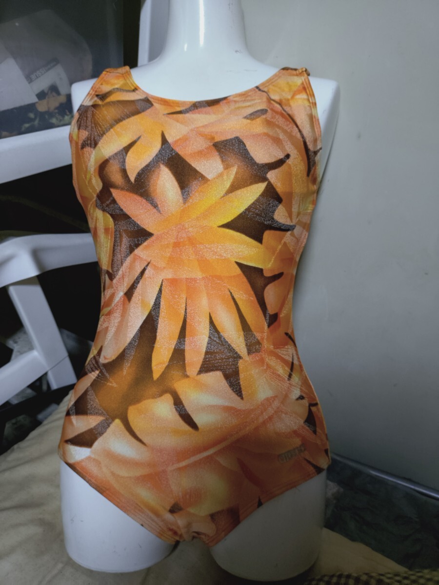 - M4413◆arena◆セレブなオレンジ系リーフ柄ワンピース水着◆13L