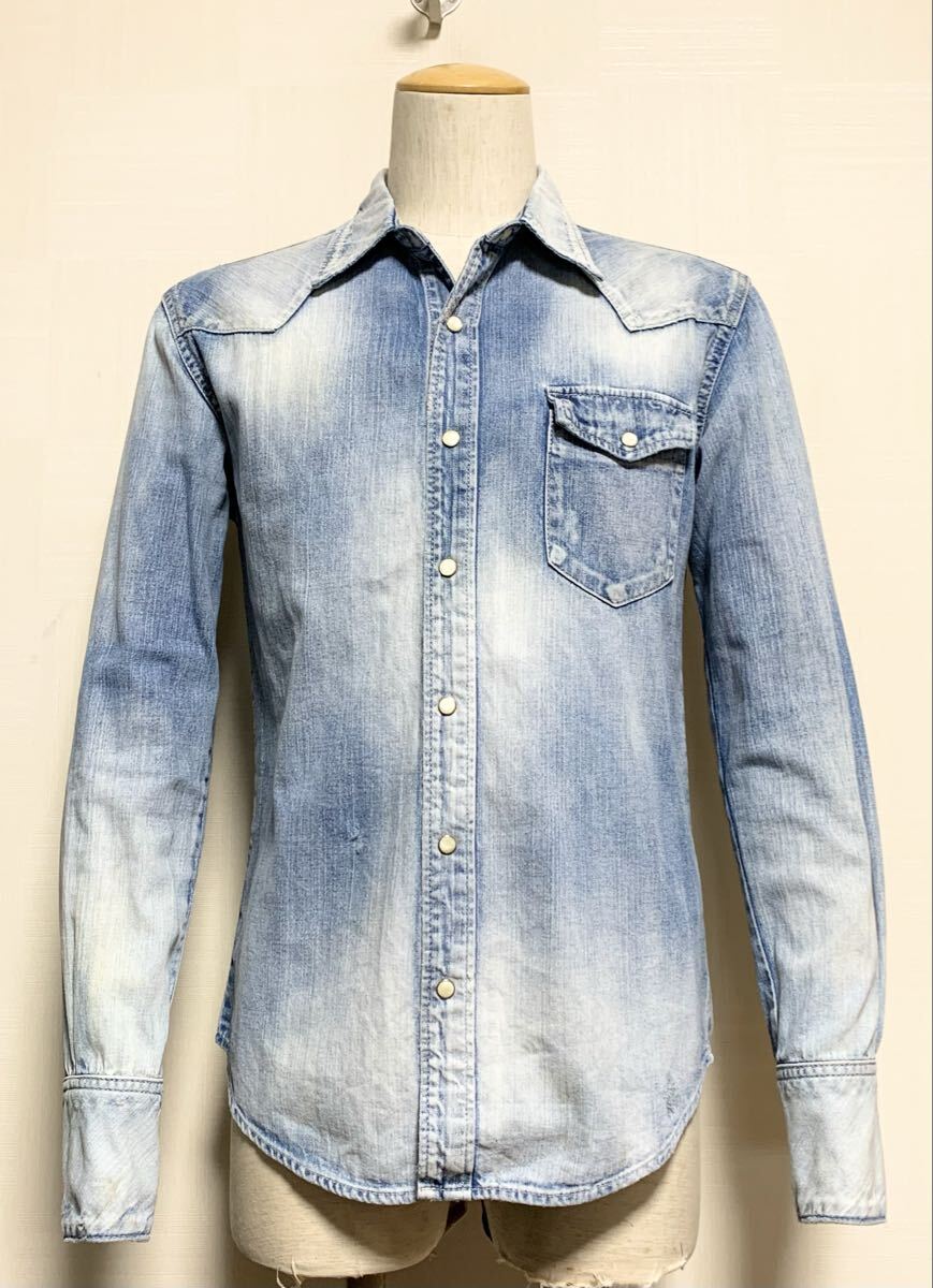 - 美品:DELAY by Win & Sons.デニム ウエスタン シャツ 3(ビンテージ 加工/肩46幅52丈71/バイカー/ロック系/backbone backlash 5351 type)