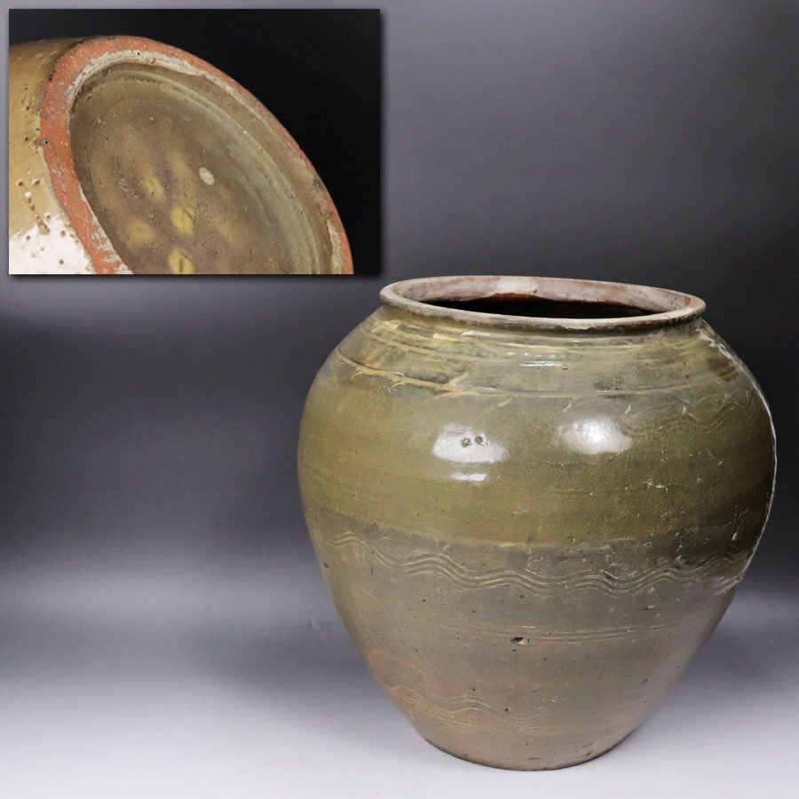 - 《源》【即決・送料無料】《江戸中期》古唐津(武雄系古窯)波状文入 時代壺